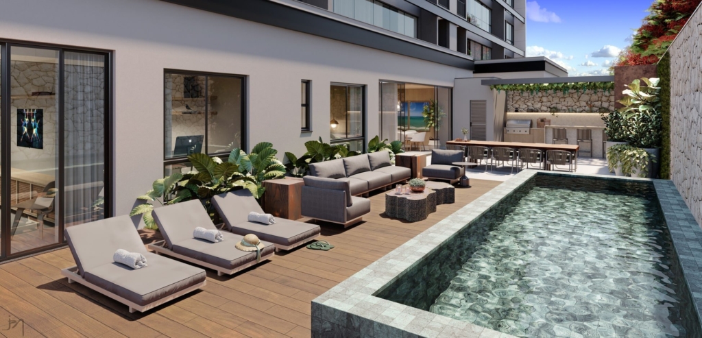 As Penthouses, com 257,08m², também apresentam quatro quartos, sendo duas suítes e duas semissuítes, e os Rooftops, que têm 274m² e quatro suítes, completam o leque de opções residenciais.
